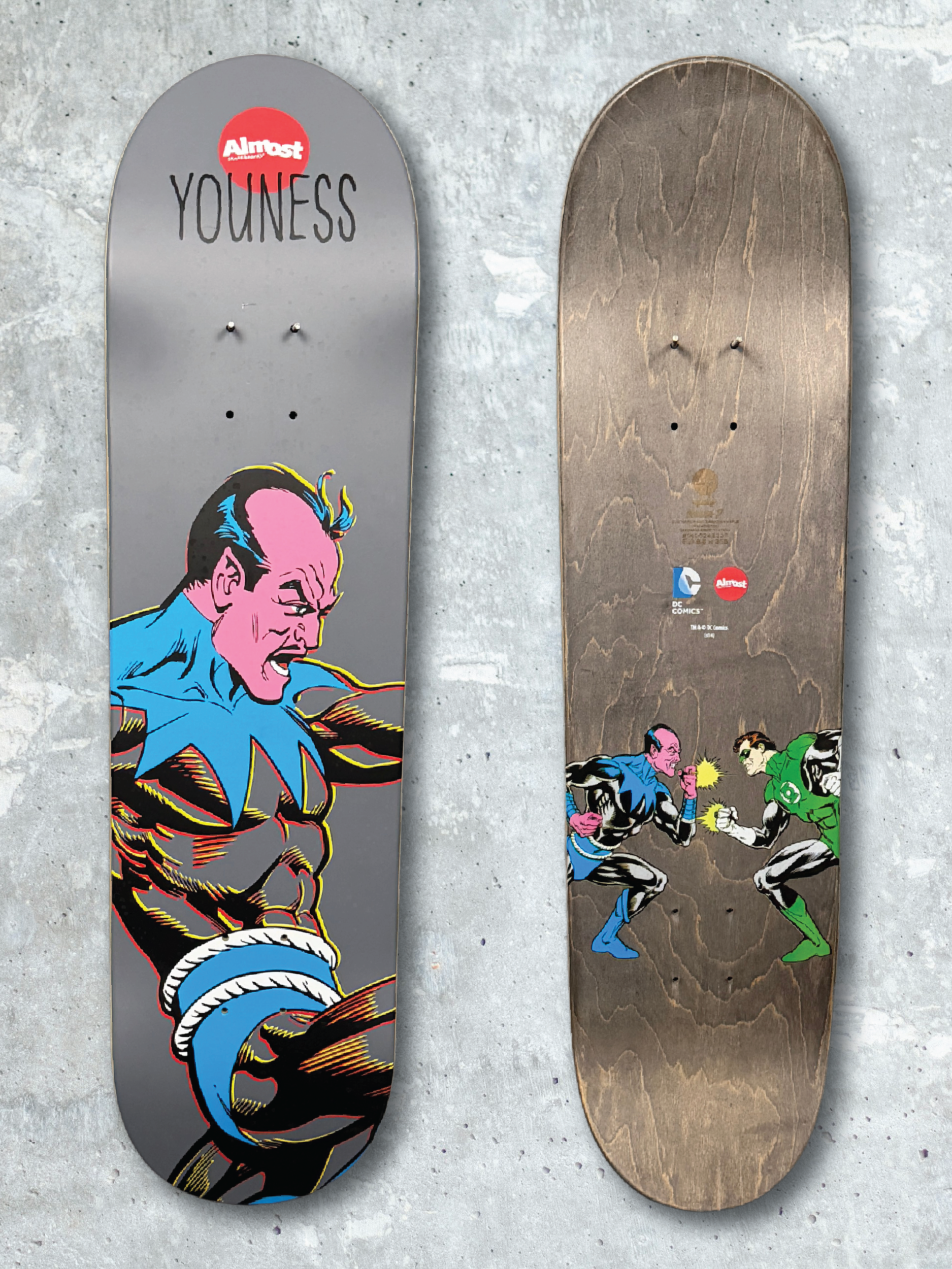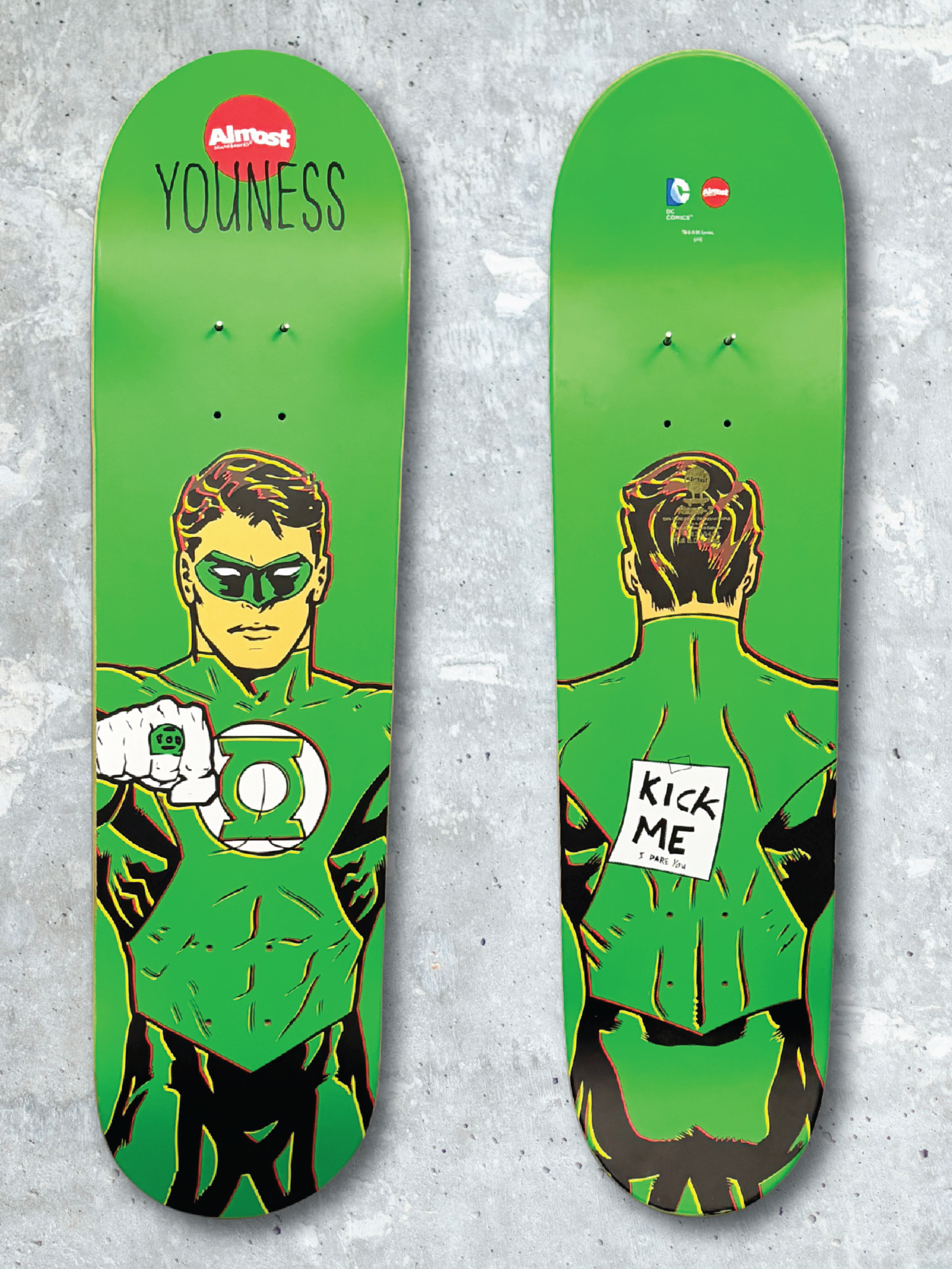 Youness Amrani pro model featuring Green Lantern, pairing technical street influence with one of DC’s most recognizable heroes and paired with Sinestro in the companion Supervillains series.