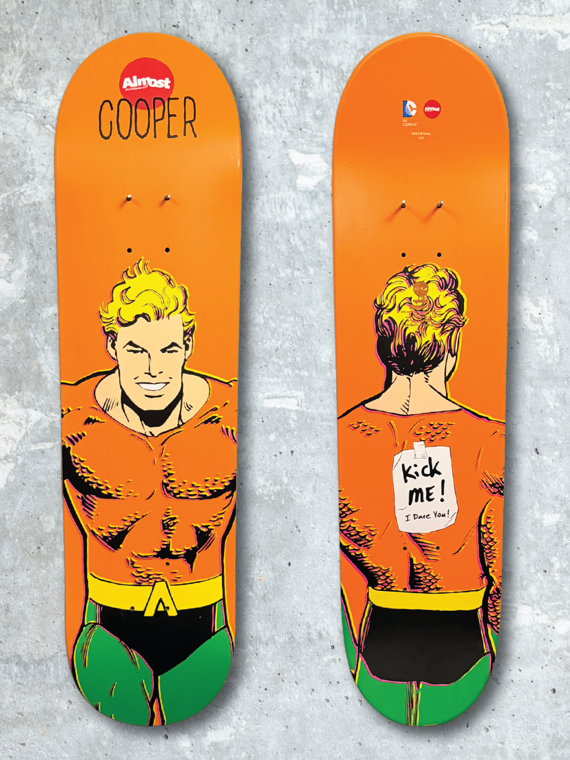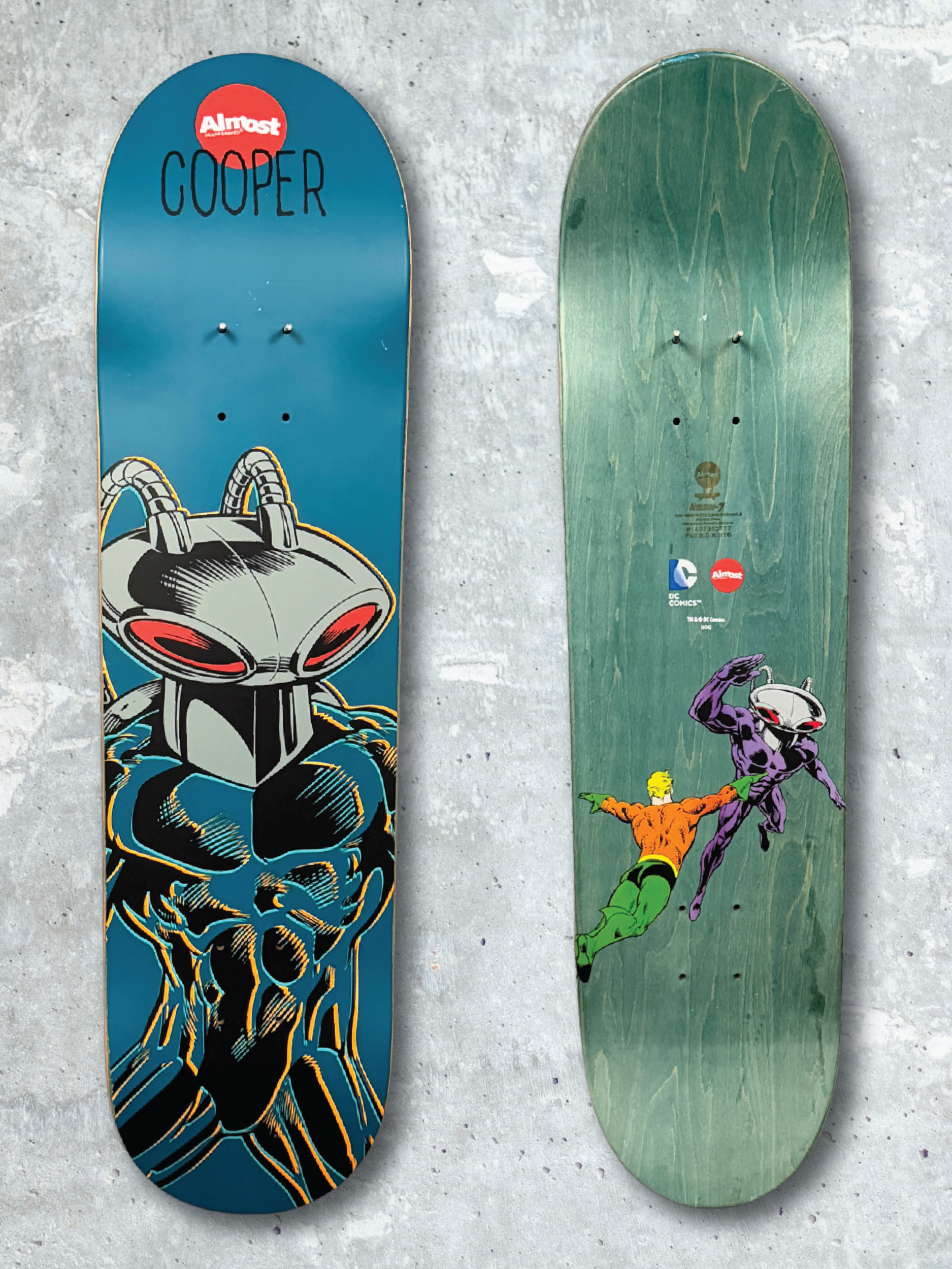 Cooper Wilt pro model featuring Aquaman, adding a distinctive character matchup to the superhero lineup and paired with Black Manta in the companion Supervillains series.