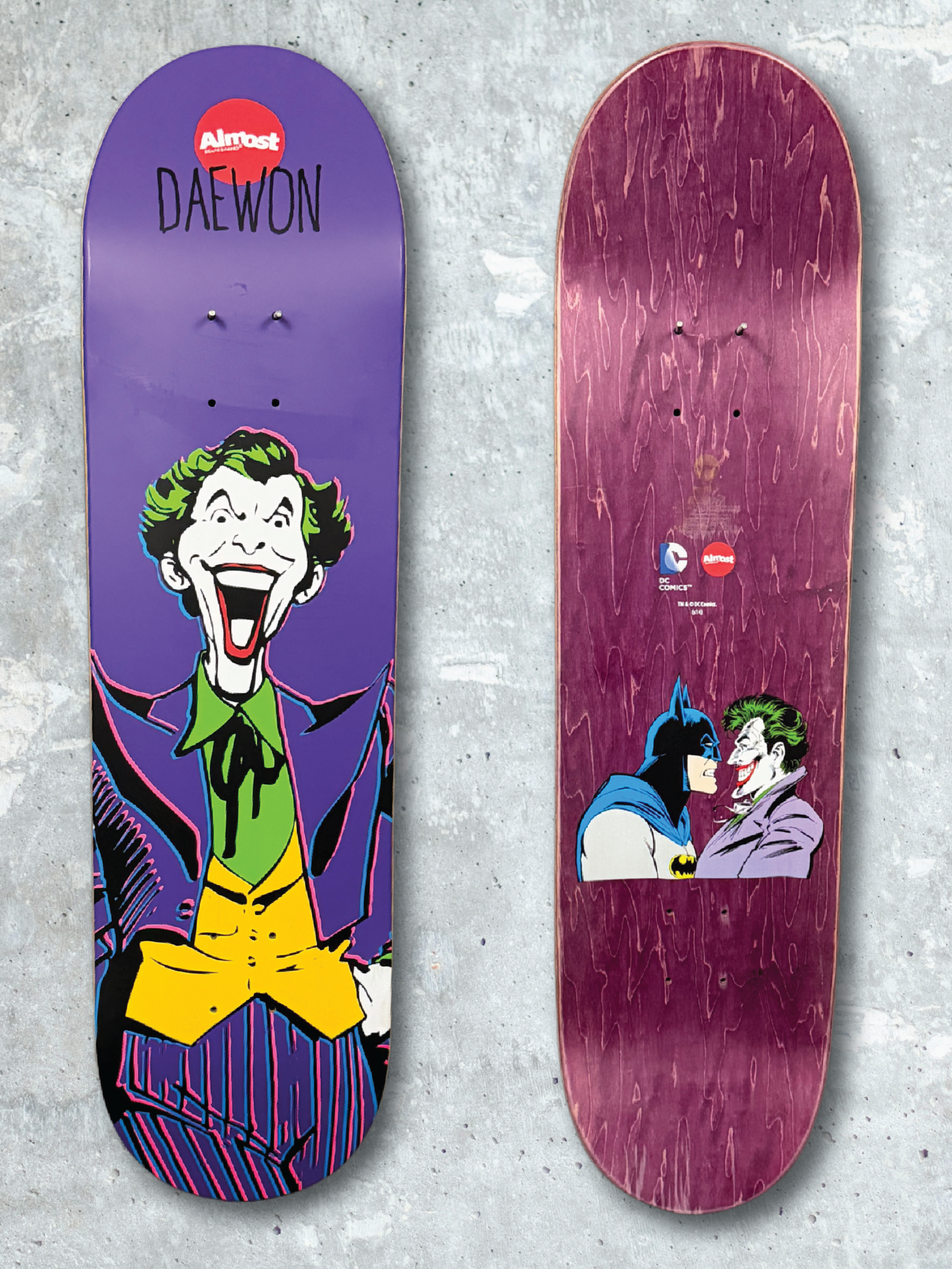 Daewon Song pro model featuring The Joker, one of the most recognizable villain pairings in the series for both skate and comic collectors. In the companion Superheroes series, it is paired with Batman.