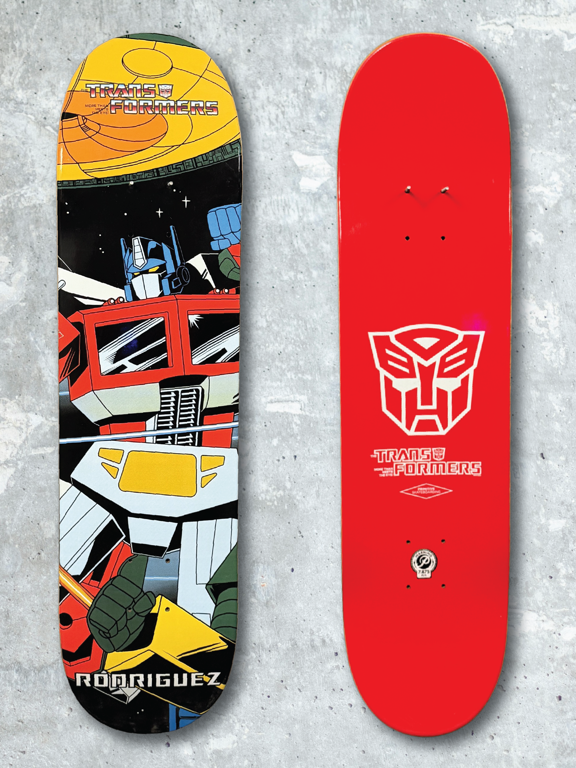 The Primitive x Transformers Series brought together Primitive Skateboarding and Transformers in a crossover release that blended modern skateboarding with one of the most recognizable franchises in pop culture. Built around a lineup of pro models and team decks, the series featured character-driven artwork tied to both heroic Autobots and iconic Decepticons, giving collectors a release with strong visual impact and broad crossover appeal.