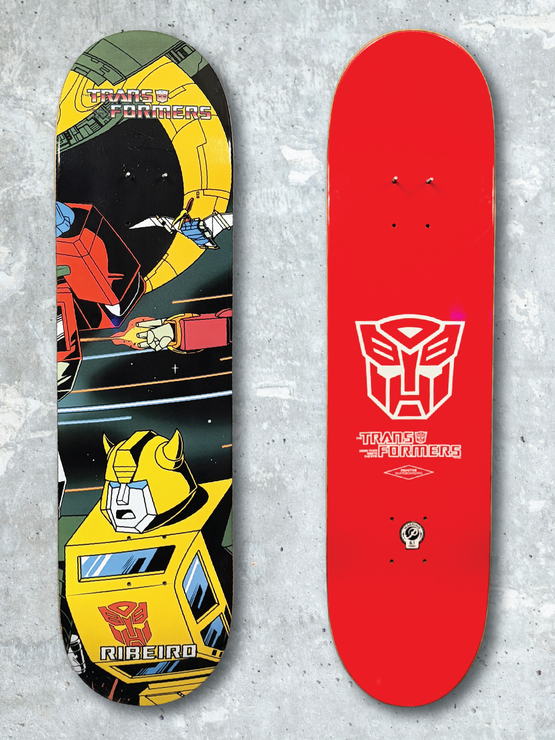 Carlos Ribeiro pro model featuring Bumblebee, combining one of Primitive’s standout riders with a character long associated with speed, loyalty, and wide fan appeal. Within the series, it adds a strong Autobot presence to the full lineup.