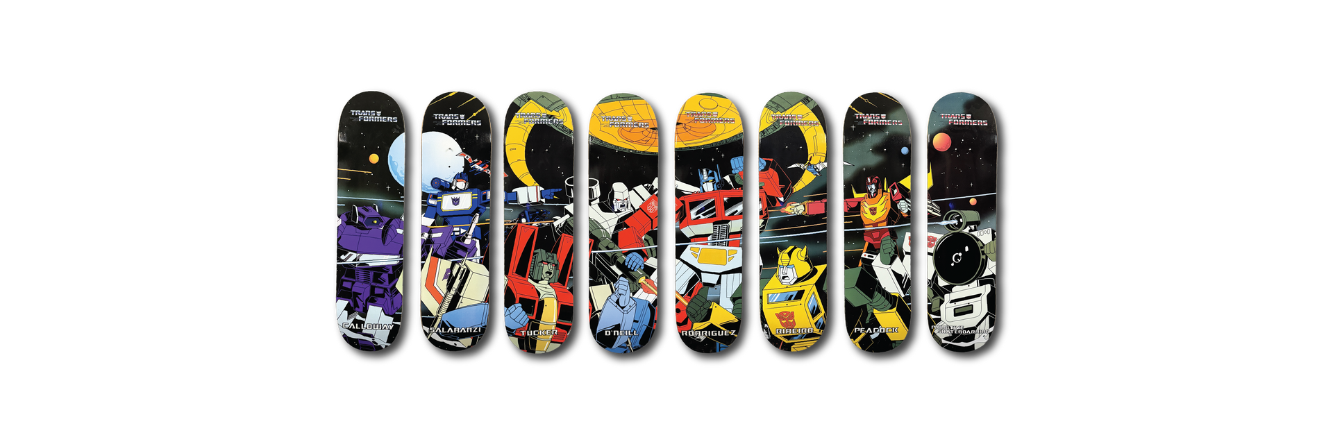 Marketed as a highly collectible crossover, these decks stand out for their franchise recognition, bold graphics, and appeal to both skateboard collectors and Transformers fans. As a complete group, they represent a memorable modern collaboration that bridges skate culture and character-based deck collecting.